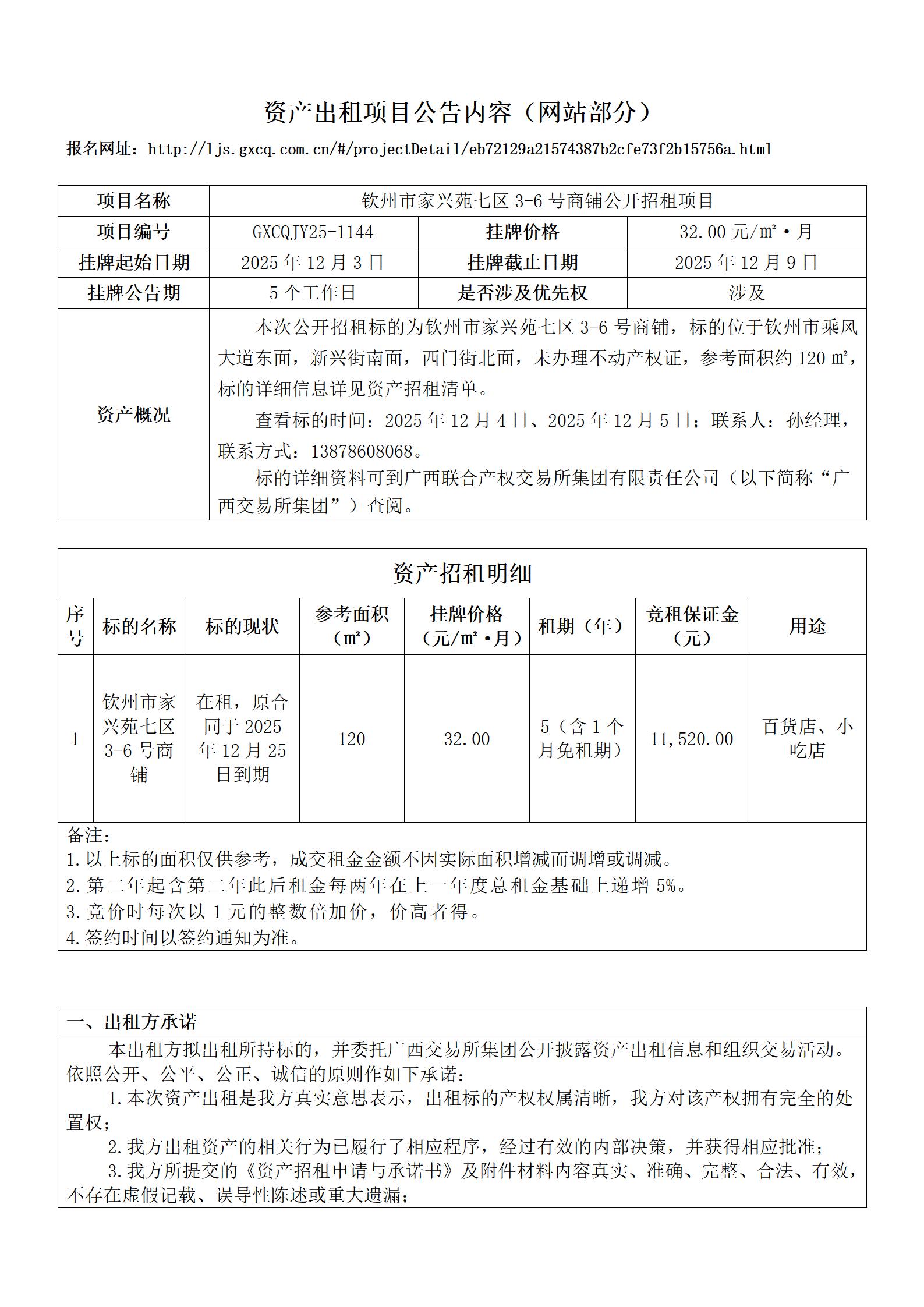 欽州市家興苑七區(qū)3-6號商鋪公開招租項目