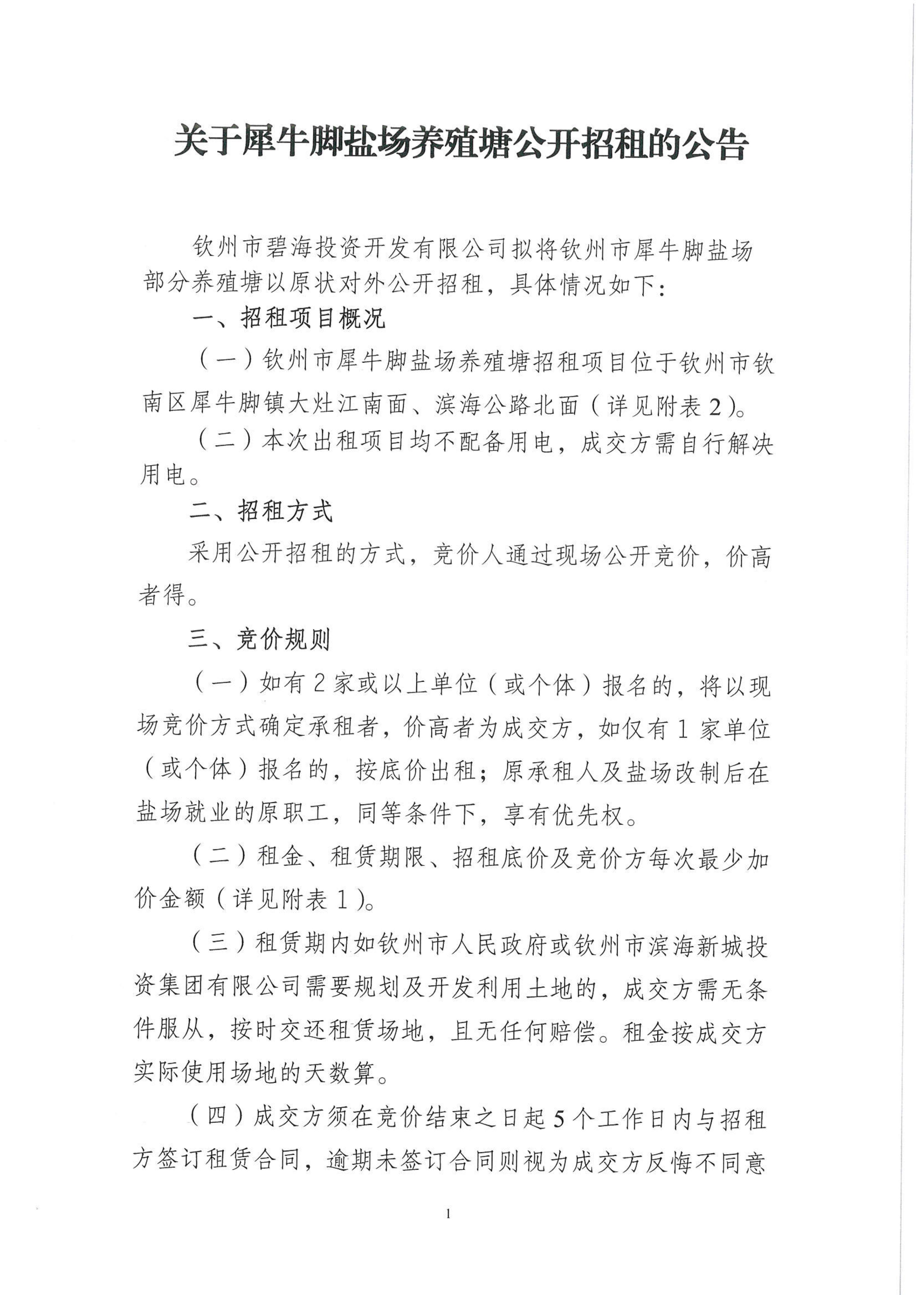 關(guān)于犀牛腳鹽場養(yǎng)殖塘公開招租的公告