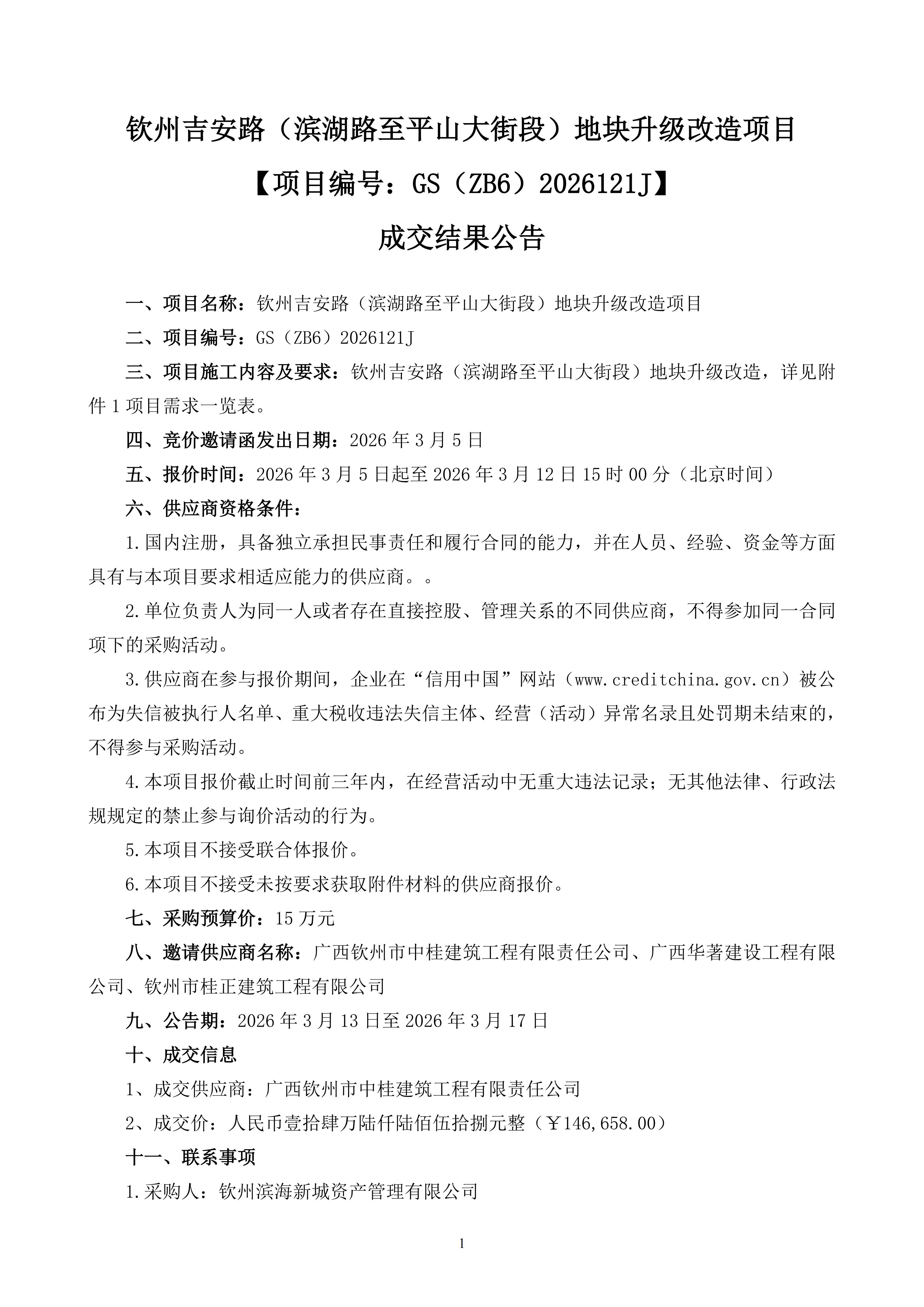 欽州吉安路(濱湖路至平山大街段)地塊升級(jí)改造項(xiàng)目 【項(xiàng)目編號(hào):GS(Z...