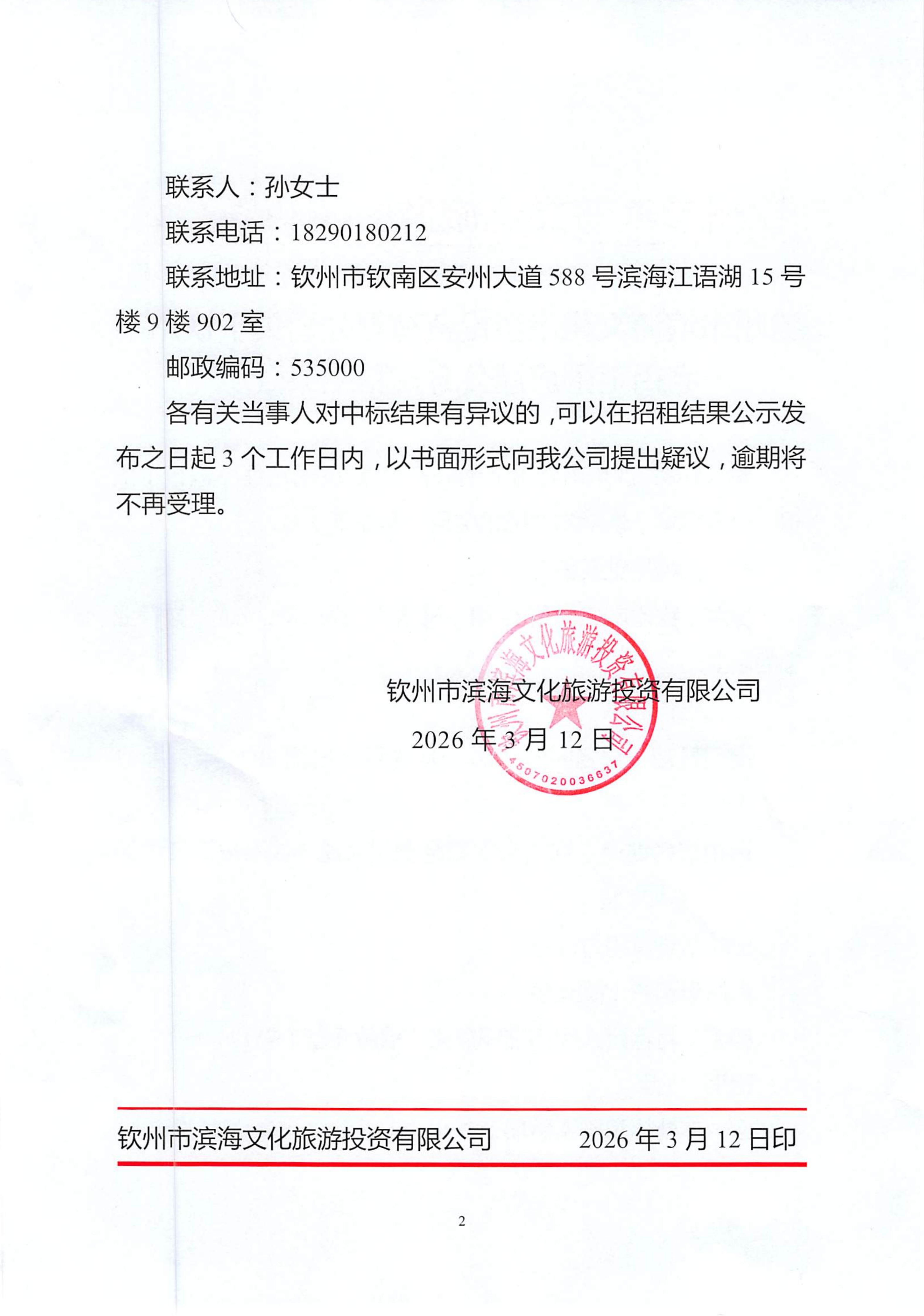 欽州市濱海文化旅游投資有限公司關(guān)于欽州市老街范圍房屋公開招租結(jié)果公示