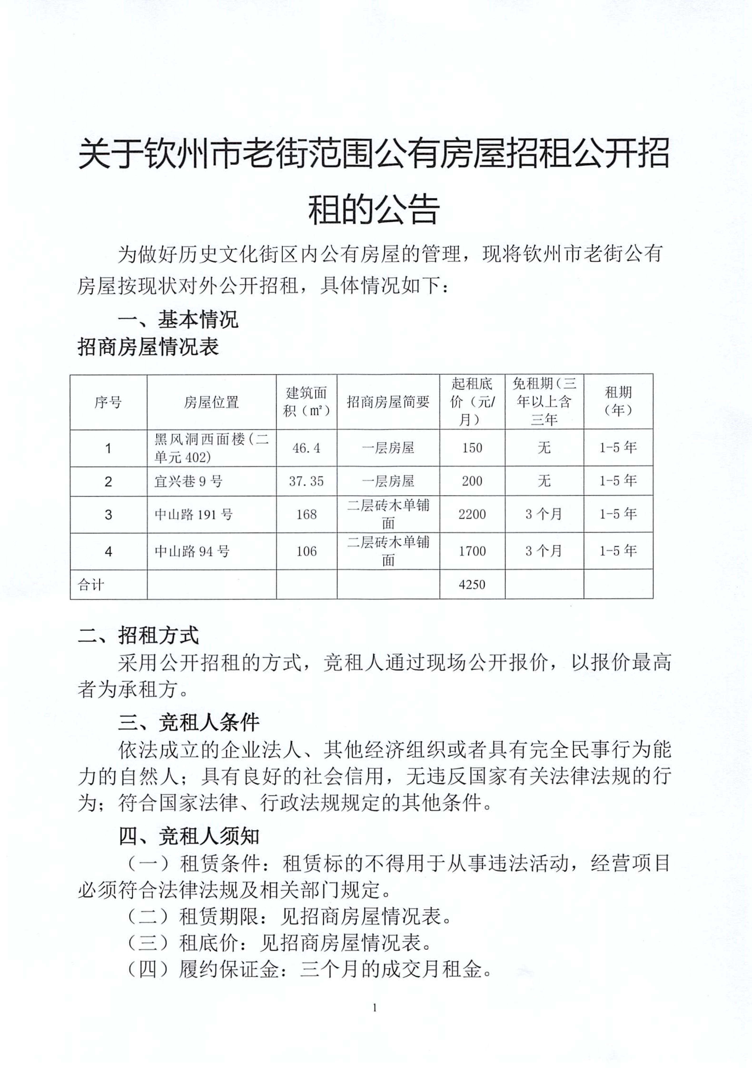 關(guān)于欽州市老街范圍公有房屋招租公開招租的公告