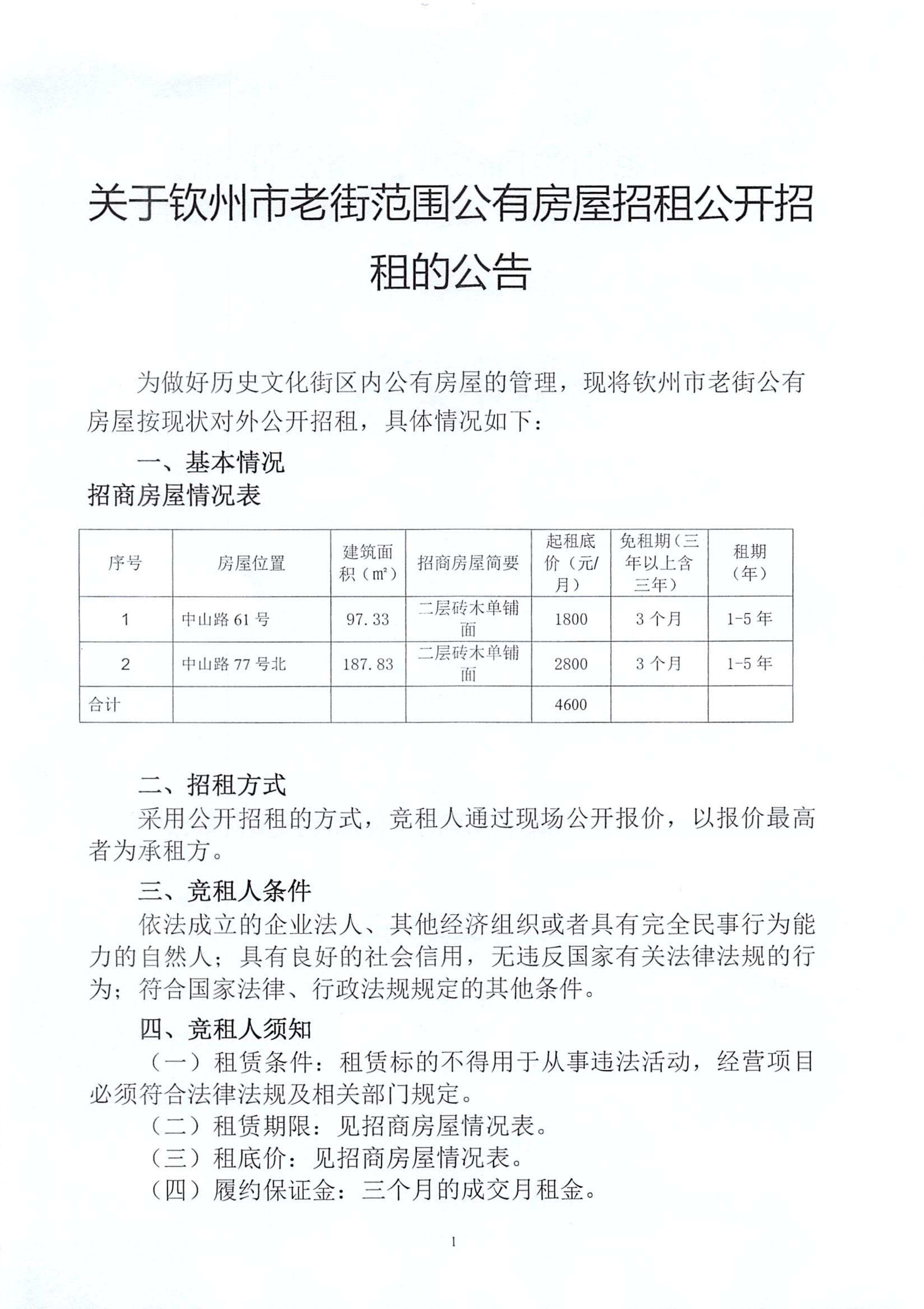 關(guān)于欽州市老街范圍公有房屋招租公開(kāi)招租的公告